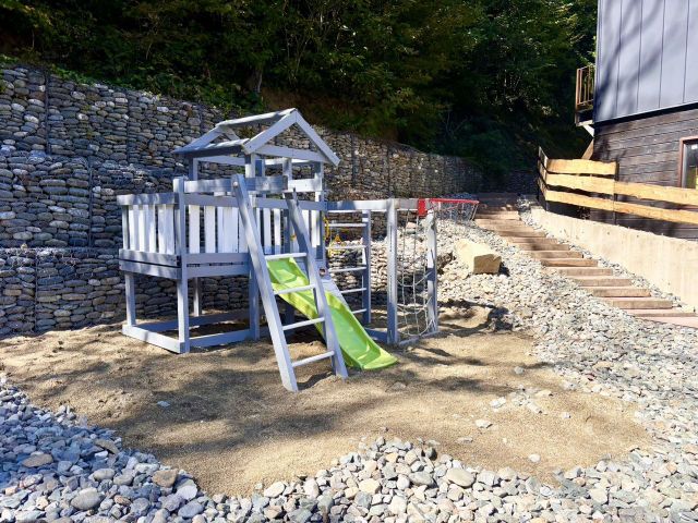 3-комнатный номер с прихожей, гостиной, двумя спальнями; двуспальная кровать, ортопедический матрас, раздвижной диван, двухъярусная кровать, ТВ, кухня, холодильник, Wi-Fi, микроволновая печь, набор посуды, чайник, чашки, чай и кофе, питьевая вода. Совмещенный санузел с душевой кабинкой, фен, гигиенические средства, полотенца, тапочки; сушилка для белья. Панорамная терраса с видом на горы.