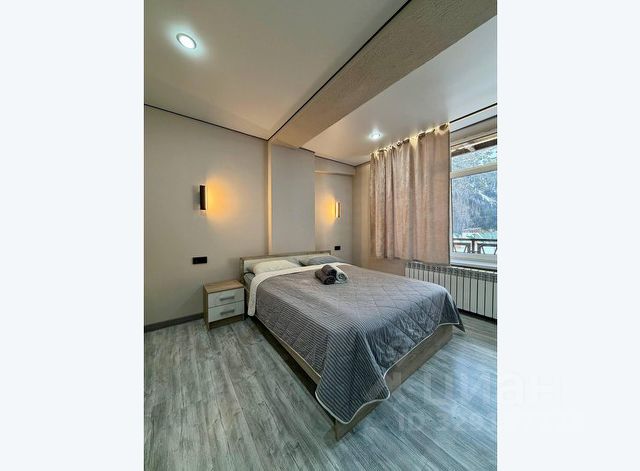3-комнатный номер с прихожей, гостиной, двумя спальнями; двуспальная кровать, ортопедический матрас, раздвижной диван, двухъярусная кровать, ТВ, кухня, холодильник, Wi-Fi, микроволновая печь, набор посуды, чайник, чашки, чай и кофе, питьевая вода. Совмещенный санузел с душевой кабинкой, фен, гигиенические средства, полотенца, тапочки; сушилка для белья. Панорамная терраса с видом на горы.