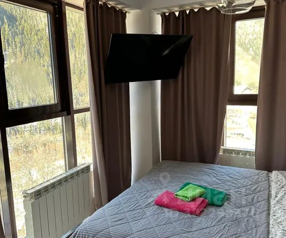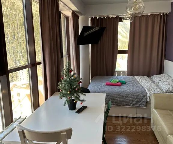 Апартаменты в гостиничном комплексе Вершина. В двух минутах от канатной дороги. Панорамные окна с видом. В квартирах есть все необходимое для комфортного проживания, включая постельное белье, полотенца, средства личной гигиены, обеденная зона со всеми кухонными принадлежностями. В самом комплексе имеется СПА, бассейн, хамам, ресторан Бизон, платная парковка и тд. Спешите, данная студия пользуется популярностью у гостей. С собаками размерами больше, чем корги и такса не принимаем. Парковка в цену проживания не входит