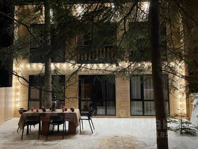 Двухэтажный коттедж с панорамными окнами и большой террасой. Персональная мангальная зона. 3 спальни с двухспальными кроватями. Все комнаты с телевизорами- smart tv. Гостиная совмещена с кухней, есть вся необходимая бытовая техника и посуда (холодильник, микроволновка, электроплита, чайник). В гостиной раскладной двуспальный диван. Два санузла с душевыми кабинами. На втором этаже французский балкончик для романтического отдыха. В доме есть WF. Можно с животными. (500р с питомца в сутки)