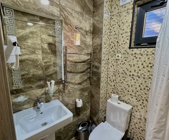 Домик оборудован двумя ванными комнатами со всеми удобствами: душевая кабина, душ, фен, зеркало, раковина, разовые зубные щетки, мыло, шампунь, гели для душа, комплект свежих полотенец, удобные тапочки, унитаз, гигиенический душ, мусорное ведро.