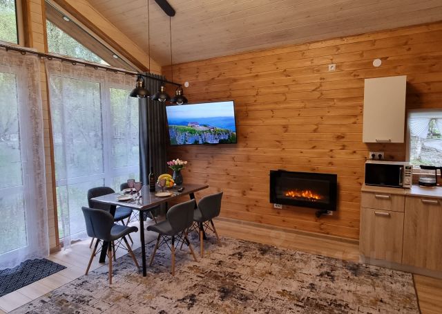 В доме уютная собственная кухня, оснащенная микроволновой печью, индукционной плитой, холодильником с морозильной камерой, эл. чайником и всей необходимой посудой.