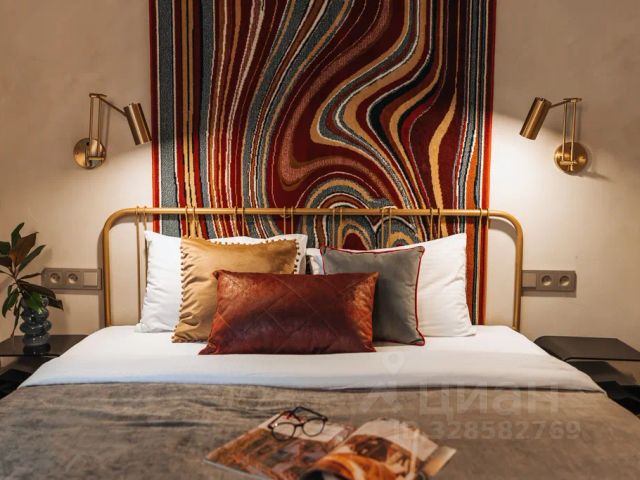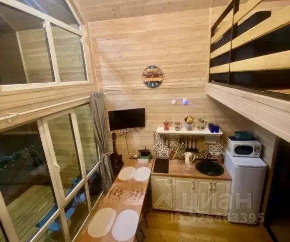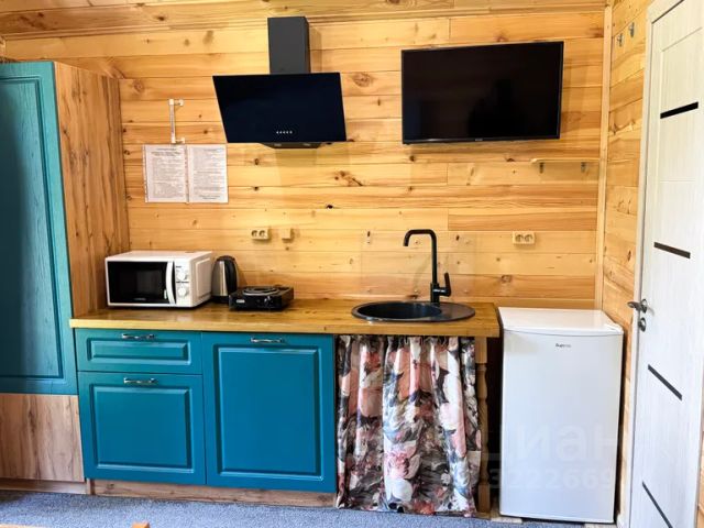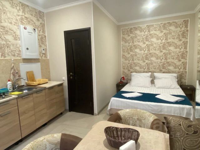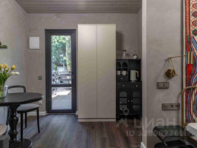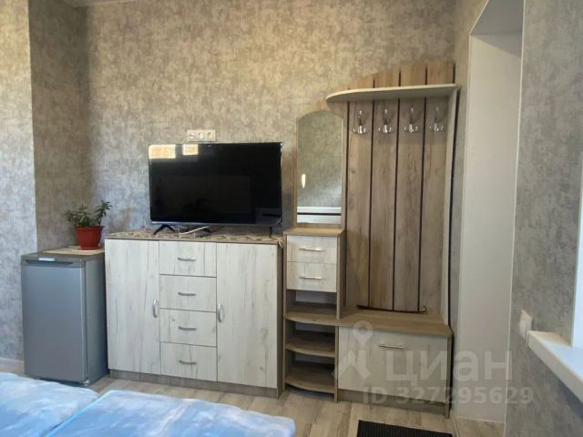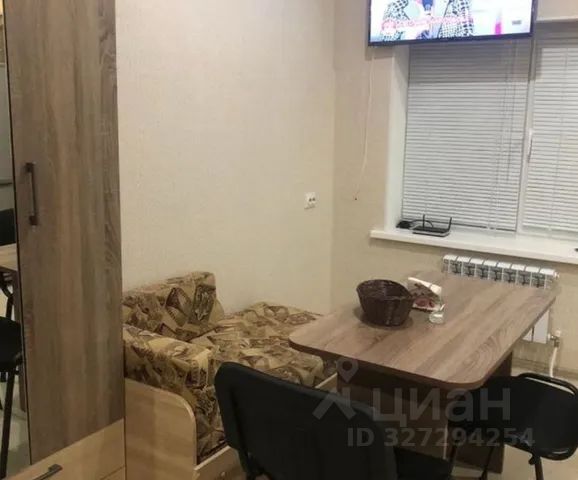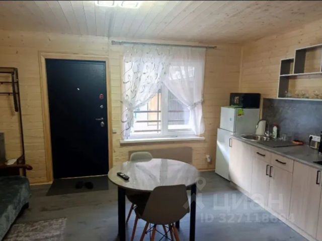 Имеется собственная кухня со всей необходимой техникой, телевизор, шкаф, вешалка, журнальный столик, комод, обеденный стол, стулья.