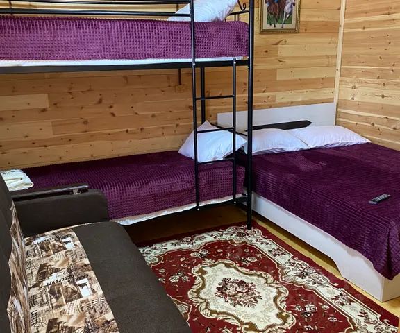 В доме: 1 двуспальный диван, (дополнительная кровать) на втором ярусе 1 двуспальная кровать.