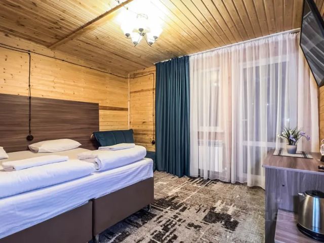 Приглашаем вас остановиться в стильном коттедже, уютно расположенном среди соснового леса, прямо над рекой Архыз. До горнолыжных трасс всего 5 минут на автомобиле, а пешком можно дойти до Софийской поляны — популярного места для прогулок, катания на лошадях, квадроциклах и снегоходах. Коттедж Трио 17 — это дом площадью 32 м² с панорамными видами на реку, горы и лес. Его терраса буквально парит над пропастью, открывая захватывающий вид на изгиб реки и бесконечный лес. Постоянный звуковой фон — умиротворяющий шум воды внизу. Идеально для пар или небольшой семьи (до 4 гостей). Дети до 4 лет проживают бесплатно без предоставления отдельного места. Важно: к домикам ведут лесные ступеньки. Это небольшое усилие стоит того - именно оно обеспечивает абсолютное уединение и уникальные виды. На территории отеля расположен банный комплекс с двумя банями и открытым подогреваемым бассейном. Одна баня предназначена для приватного отдыха одной компании, другая — для групповых посещений. Стоимость посещения бани и бассейна уточняйте при бронировании. В нашей гостинице разрешено проживание с домашними животными (собаки или кошки) весом до 10 кг, не бойцовских пород — по предварительному согласованию. При оформлении бронирования необходимо отправить фотографию питомца. Стоимость размещения — 2 500 руб. за весь период, плюс депозит 5 000 руб. Заезд: с 15:00 до 21:00 (поздний заезд — по договорённости). Выезд: до 11:00. Все пожелания по времени и дополнительным услугам удобно согласовать до 20:00 - конца рабочего дня нашего сотрудника. Уборка проводится каждые 4 дня с заменой полотенец и постельного белья. Внеплановая уборка с полной заменой белья — 2 500 руб. В целях комфорта всех гостей курение кальяна в домиках и на террасах запрещено. Курить сигареты (включая электронные) можно только на террасе и в специально отведённых зонах на улице. Нарушение правила приводит к дополнительной уборке стоимостью 5 000 ₽ и досрочному выселению без возврата оплаты. Планировка и оснащение дома Коттедж продуман до мелочей, чтобы каждый гость чувствовал себя уютно и комфортно: •Кухня: полностью оборудована для любого кулинарного эксперимента — индукционная плита на одну конфорку, микроволновка, посудомоечная машина, холодильник с морозильной камерой, умный электрочайник, полный комплект посуды и кухонной утвари, а также соль, сахар и чай. •Ванная комната: премиум-сантехника, тропический и гигиенический душ, фен, полотенца, тапочки, шампунь, кондиционер, зубные щётки; халат предоставляется по запросу. •Гостиная: уютная зона с телевизором и обеденным столом, где можно расслабиться после активного дня на природе. •Зона отдыха: спальня с кроватью king-size (160190 см) на ортопедическом матрасе, подсветкой, прикроватными тумбочками и комодом. Постельное бельё —страйп-сатин. Раскладной диван (140190 см) в гостиной увеличивает вместимость до 4 человек. •Терраса: оборудована садовой мебелью и открывает завораживающий вид на реку Архыз — идеальное место для утреннего кофе или вечернего отдых