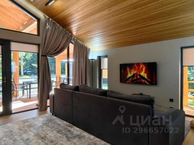 Двухэтажный коттедж с панорамными окнами и большой террасой. Персональная мангальная зона. 3 спальни с двухспальными кроватями. Все комнаты с телевизорами- smart tv. Гостиная совмещена с кухней, есть вся необходимая бытовая техника и посуда (холодильник, микроволновка, электроплита, чайник). В гостиной раскладной двуспальный диван. Два санузла с душевыми кабинами. На втором этаже французский балкончик для романтического отдыха. В доме есть WF.