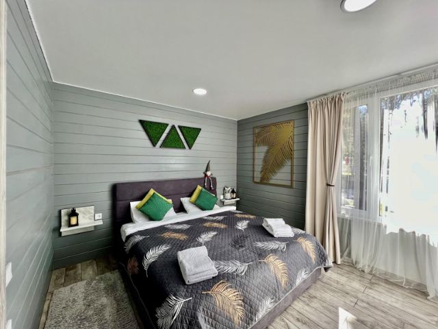 Уютный комфортный домик на 4 человека! Включает отдельную спальню, кухню - гостиную и ванную комнату. В доме есть все необходимое для комфортного проживания: телевизор, вай-фай, плита, микроволновка, холодильник, чайник! Домик с уютной верандой для веселых посиделок!