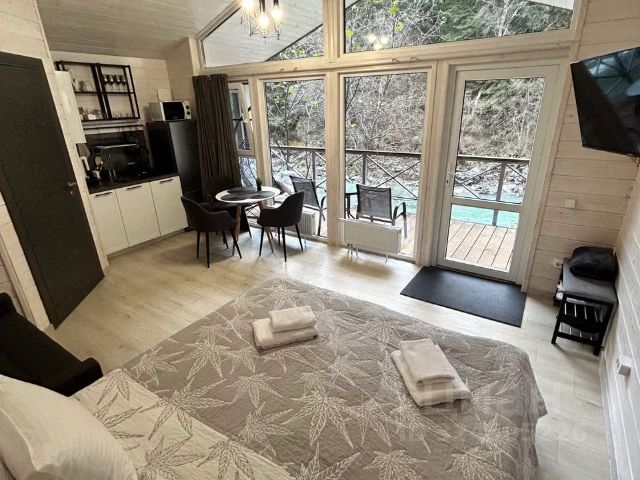 Сдаётся новый коттедж на территории базы ECO Shalet в заповедной лесу вдоль реки Псыш. На территории домика есть мангал, терраса с мебелью. Дом оснащён полноценной кухней, предоставляется вся необходимая посуда и кухонные принадлежности. На каждом этаже имеется отдельный санузел, изолированные комнаты, первый этаж тёплый пол.На сутки не сдаётся!