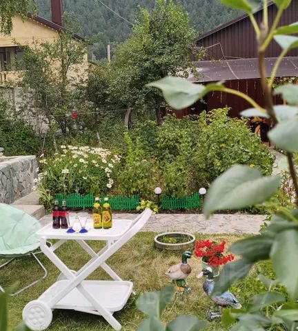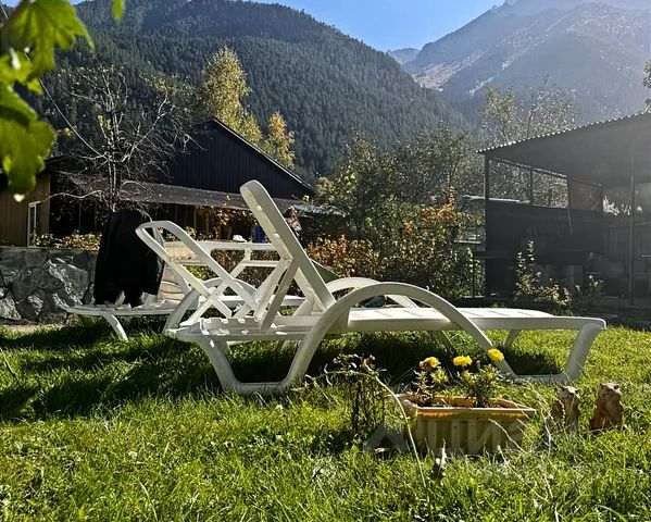 К дому прилегает терраса с видом на горы, с уличной обеденной зоной и мангальной, оснащенной шампурами, решеткой, казаном 10 л, дровами, топором, горелкой, перчатками, ветошью.
