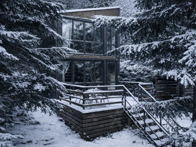 Стильный новый горный домик в лесу, с панорамным остеклением в два этажа, с террасой и отдельной зоной барбекю с мангалом-грилем. Дом оснащен проектором для просмотра фильмов и акустической системой "Алиса". Комфортно размещает до 4-х человек. Дом находится в лесу, в тишине и уединении, вы будете просыпаться под пение птиц, с прекрасным видом, но в то же время в пешей доступности находятся кафе, магазины, прокат, от центральной улицы посёлка ходит трансфер к подъёмникам.
