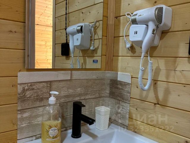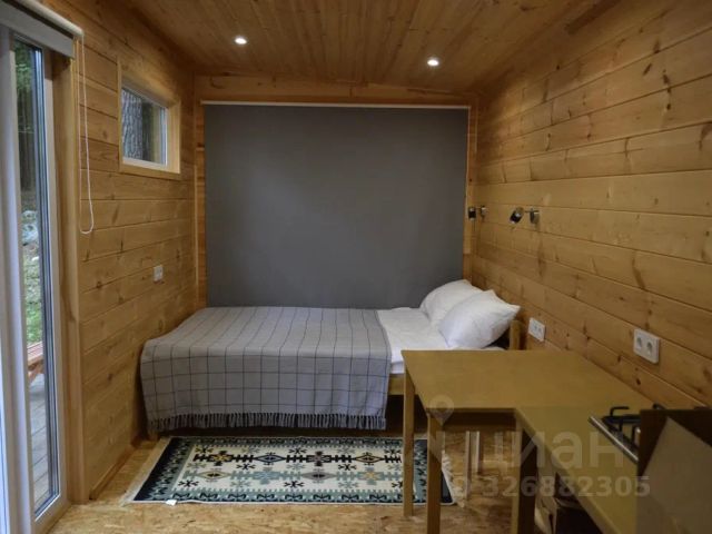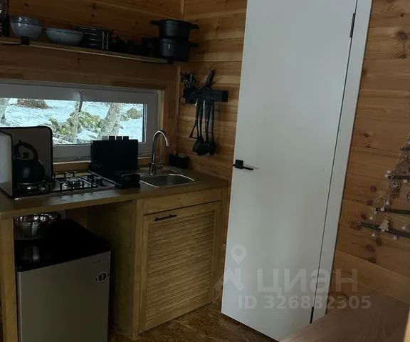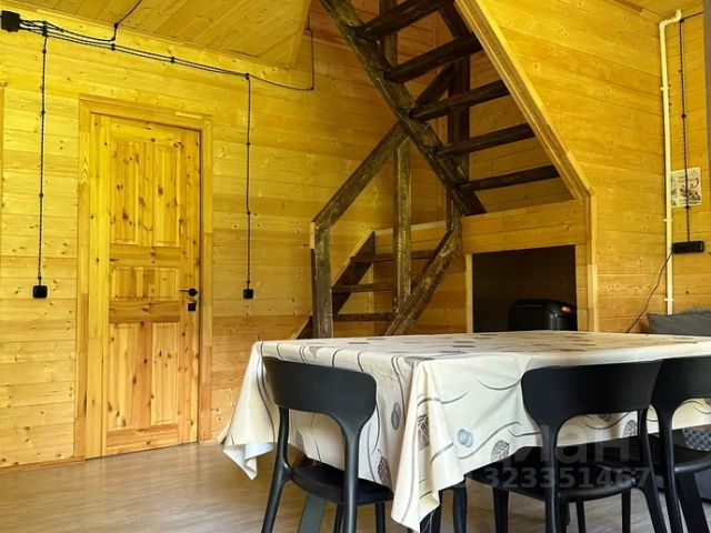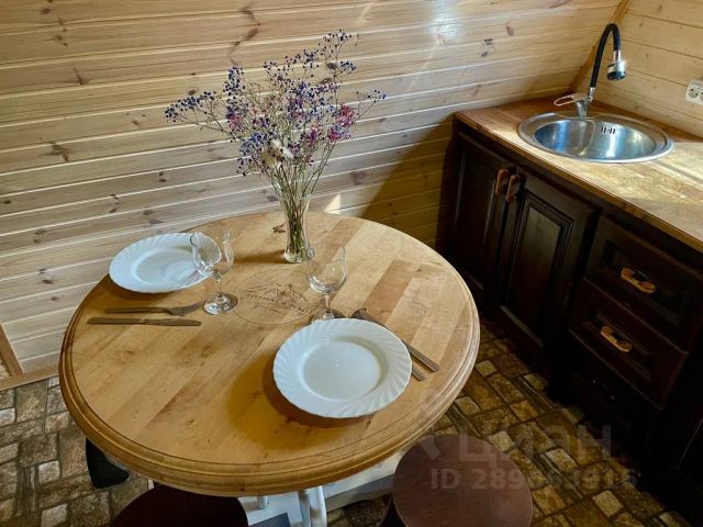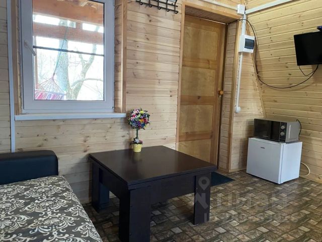 Для комфортного проживания гостей дом оснащен всем необходимым. В доме есть кухня-гостиная: стол, стулья, двуспальный диван, микроволновая печь, холодильник, колонка, вся