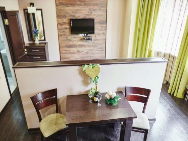 Удобный диван позволит разместиться в компании или просто расслабиться за чтением книги. Большой телевизор добавит развлечений в ваши вечера