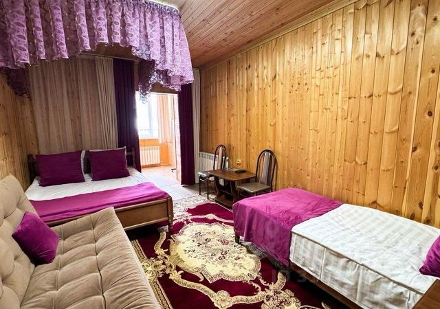 В комнате есть все необходимое для комфортного размещения: двуспальная и односпальная или 3 односпальные кровати, раскладной двухместный диван, постельное белье, полотенца, телевизор, стол, стулья, шкаф, санузел. Окна в номере выходят на лестницу, вида нет. Горячая вода, теплый пол, отопление. Вкусные домашние завтраки или пансион. Трансфер до подъемника, организация экскурсий.