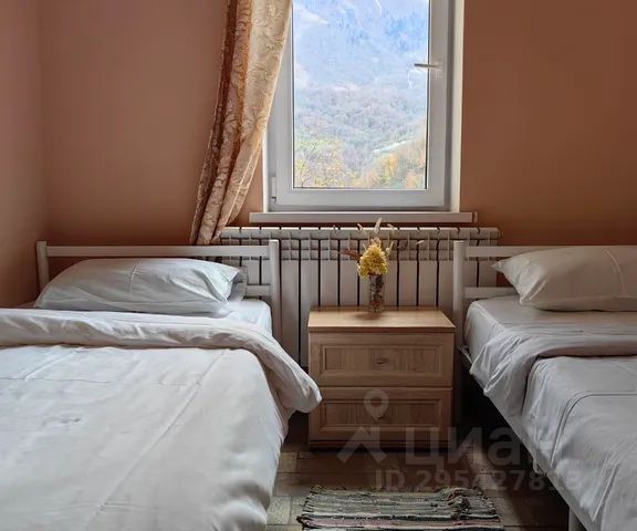 Отдельный этаж с прекрасным видом на горы. Вход отдельный, с соседями не встречаетесь. Второй этаж: Две спальни (по две отдельных кровати в каждой, кровати при желании смыкаются), раскладной диван на двоих, Санузел с душем, полотенцами, феном, предметами личной гигиены, Кухня (кухонный гарнитур, печка газовая, раковина кухонная, вся посуда для готовки и сервировки стола), чайник, холодильник, телевизор, шкафы, стол, стулья, Гладильная доска и утюг. Входы разные на этажи. У вас будет своя веранда с мебелью (можно пить чай в тапочках и халате, не выходя на улицу), Парковка, мангальная зона. На территории находятся: Закрытая парковка, Мангальная зона у каждого дома своя (мангалы, шампуры, решетки) с необходимыми принадлежностями, Беседки с мебелью (столы, скамейки).