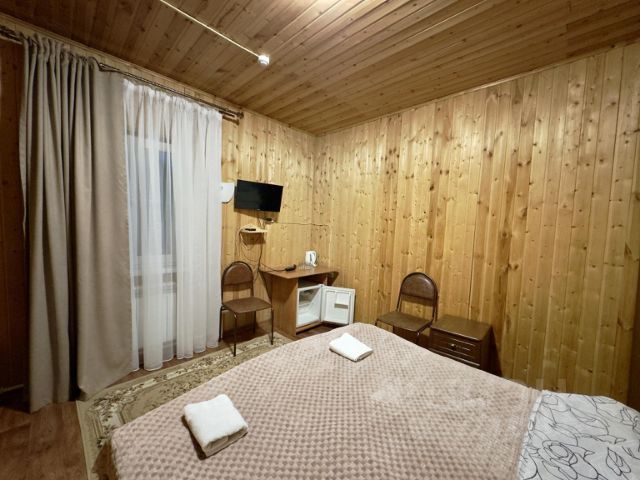 Однокомнатный номер со всеми удобствами в Домбае В стоимость проживания включены : -завтраки ; -бильярдная зона ; -бесплатная парковка ; -уличная зона отдыха ( беседка )+ мангал. В номере есть : -чайник ; -телевизор ; -чистое постельное белье и полотенца ; -тапочки и средство гигиены для каждого гостя; -горячая вода -фен. Микроволновая печь и утюг в общей зоне доступа. Доступны услуги прачечной за отдельную стоимость Рядом находится лес и речка, кафе, магазины, канатная дорога ,все в шаговой доступности. Также у нас на территории есть русская баня ( в цену проживания не входит). Курить можно на территории отеля. Помогу вам выбрать самое подходящее место для вашего отдыха Пишите /звоните, всё детально расскажу.