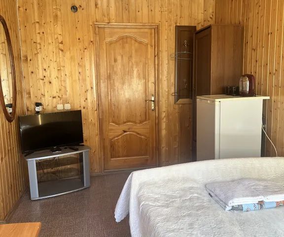 Уютный номер состоит из трёх зон: холла, спальни и детской. В наличии балкон с видом на горы, санузел с душем, холодильник, спутниковое ТВ, мягкая мебель, шкаф и комод. Для удобства гостей предусмотрены стол, стулья, тумбочки и чистое постельное белье, создающие комфортную атмосферу для отдыха.