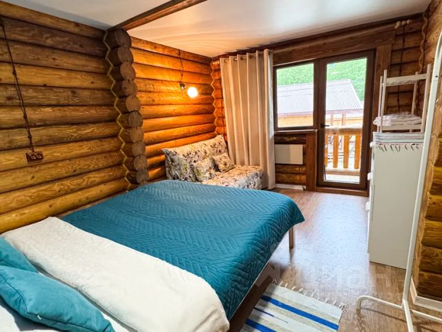 Современный 2-комнатный номер на 2-ом этаже дома. Имеется общая терраса на 2 номера с живописным видом на горы. Вместимость до 6-ти Гостей. Для Гостей проживающих в номерах предоставляется просторная общая кухня с обеденной зоной на 1-ом этаже. Спальные места: 2-спальная кровать, 3 шт 1-спальные кровати и раскладной диван-малютка. Оснащение номера: Smart-ТV, электрический чайник, фен, комплекты постельного белья, а также 2 полотенца на Гостя. Санузел в номере: душ, раковина, туалет, базовые гигиенические средства (мыло, шампунь). Отопление: электрическое. Стиральные машинки, сушка, утюг и гладильная доска предоставляются в отдельном домике в 5 метрах (бесплатно) . Там же имеется место для сушки и хранения горнолыжного снаряжения. Уборка, смена белья/полотенец (1 раз в 5 дней).