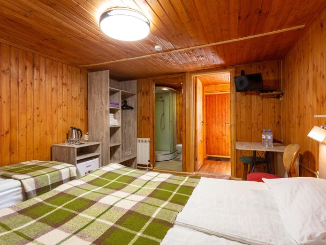 У данной категории номера общая душевая и общий туалет. Подъёмники и точки общественного питания находятся в шаговой доступности. Мангальная зона, место для парковки транспортных средств! В зимний сезон завтрак и ужин включены в стоимость проживания с 30 декабря по 10 марта. ВНИМАНИЕ: При групповом бронировании от 25 человек , организатору группы проживание и питание предоставляются бесплатно !
