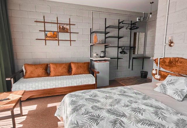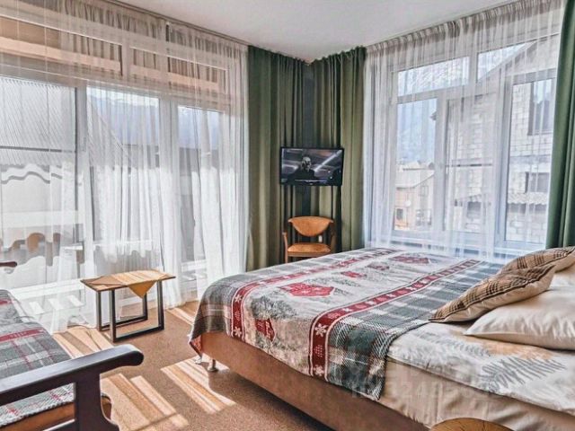 Двухместный номер площадью 25 кв.м с видом во двор. Подходит для размещения 2 человек. Имеет спальню с приятным интерьером. В номере: 1 двуспальная кровать king-size. Имеется телевизор, отопление, шкаф, вешалка, зеркало, журнальный столик, чайник, холодильник, мини-бар, стулья. Индивидуальная ванная комната: душ, раковина, туалет, фен. В стоимость входит: Постельное бельё, полотенца, мыло, халат, тапочки, шампунь, гель для душа, кондиционер. WI-Fi бесплатно на всей территории. Бесплатная частная парковка под видеонаблюдением на территории. Гостевой дом "Golden House" расположен в самом сердце Теберды, всего в нескольких минутах от живописного озера "Кара-Кёл", в 5 минутах Джамагатское ущелье, Биосферный заповедник, в 15мин горнолыжный курорт Домбай. "Golden House" - это идеальное место для тех, кто ищет умиротворение и комфорт в окружении живописной природы . Размещение: Мы предлагаем уютные номера различных категорий, оборудованные всем необходимым для комфортного проживания. В каждом номере есть удобные кровати, телевизор, холодильник, чайник, бесплатный Wi-Fi и собственная ванная комната с душем . Удобства: - бесплатный Wi-Fi - кафе с домашней кухней - баня - мангальная зона - бильярд - парковка - незабываемый вид на горы