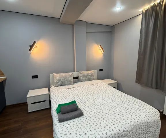 Номер-студия, расположен на втором этаже административного корпуса. Есть 2 кресла, которые раскладываются в дополнительные спальные места, каждое доп место+ 1000 руб. Желательно предупреждать о количестве гостей заблаговременно В домике есть: Двуспальная кровать Кресла (доп. спальные места) Душевая кабина, фен Телевизор Wi-fi Стол на 4-х человек Холодильник (имеются формы для льда) Электрический керамический чайник с набором кружек на 4 персоны, набор посуды на 4 человек, бокалы для вина и шампанского, рюмки, стаканы. Комплект гигиенических принадлежностей и одноразовые тапочки, на территории имеется мангальная зона, шампуры. Уголь и дрова имеются в продаже