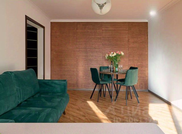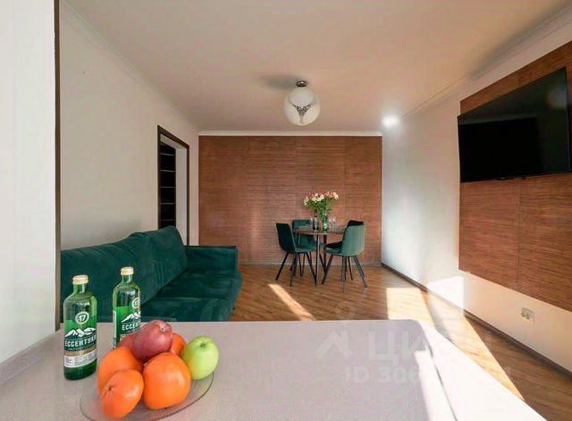 Гостиная: большой раскладной удобный двухместный диван, обеденный стол, мягкие кресла, телевизор с подключенным "Окко ТВ", гардеробная. Для музыкальных гостей — пианино, которое проходило настройку мастером в мае 2025 г.