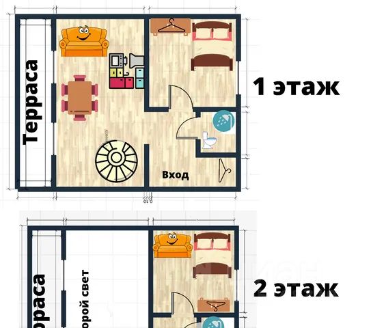 Гостиная / кухня + 2 спальни на 1-ом этаже с собственными санузлами + спальня на 2-ом этаже дома.