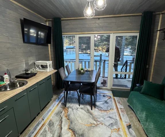 Уютный современный дом в хвойном лесном массиве площадью 35 кв. М. С изолированной спальней вместимостью до 4-х человек. Размещение гостей на полноценной 2-спальной кровати и раскладном 2-спальном диване. Полностью оборудованная кухня со всей необходимой посудой. Все удобства внутри дома с душевой зоной. Выдаются комплекты белья и полотенца. Вода чистейшая, родниковая. Есть место для хранения лыж и больших сумок. Находимся при въезде в с. Архыз между 70 и 71 км. Заезд 600 метров от федеральной трассы по благоустроенной лесной дороге (иногда зимой в снегопад машинам с низкой посадкой может быть затруднен проезд). До центра с. Архыз на авто 5 минут (3 км), до лыжных трасс 20-25 мин. На авто. На территории имеется магазин, wi-fi, кабельное тв. У домика своя беседка во дворе, качели, мангал (бесплатно предоставляются шампуры и решетка для барбекю). Также рядом есть баня, купель (50 м. ), кафе, кальянная, караоке (150 м. ) Заселение с 14: 00 Выселение до 12: 00