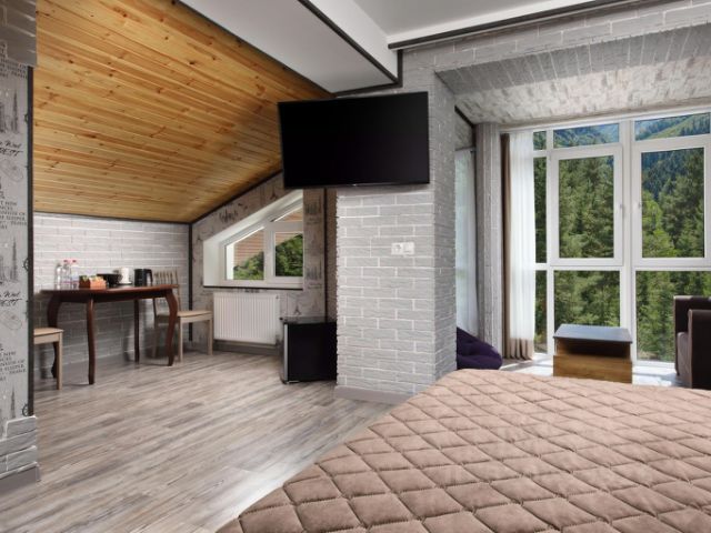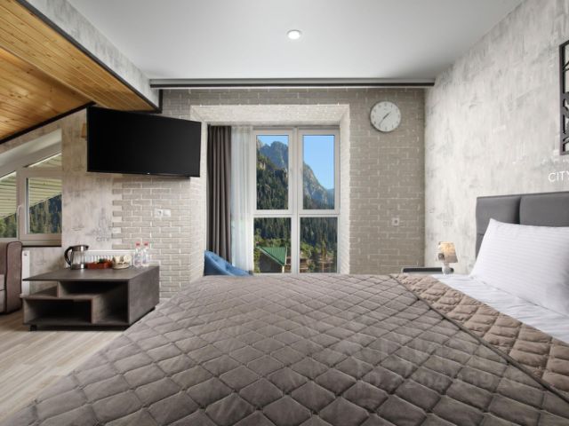 Гостевой дом "Жемчужина" расположен в городе Теберда в 1 км от центра города. Рядом с гостевым домом — Тебердинский национальный парк, заповедник, озеро Кара-кель, Гора Мусса-Ачитара и Алибекский водопад. Гостям для проживания предлагаются уютные номера с панорамными окнами с видом на Тебердинский национальный парк, заповедник , Кавказские горы и чистейшие воды горных рек. Каждый из номеров оборудован всем необходимым для комфортного проживания: удобные спальные места, комплект мебели, Wi-Fi, телевизор с системой Smart TV. Туалетная комната: душевая кабина или просторная ванная, фен, набор полотенец, тапочки, косметический набор. К услугам гостей на территории: комфортабельные номера, ресторан, прачечная, Wi-Fi, мангальная зона, парковка и детская площадка. На выбор для удобства гостей предлагаем проживание в гостиничных номерах или в отдельно стоящих коттеджах. Нас легко найти на карте, так как мы находимся на федеральной трассе, в 15 минутах езды от горнолыжного курорта п. Домбай Достопримечательности рядом 304 м. Музей природы Тебердинского государственного природного биосферного заповедника 1.52 км. Дом-музей просветителя и художника И. П. Крымшамхалова 1.84 км. Музей минералов, руд, самоцветов "Удивительное в камне" 30.3 км. Музей истории с. Хасаут-Греческое 34.54 км. Нижне-Архызский архитектурно-археологический комплекс 34.6 км. Отдел аланской культуры 47.67 км. Музей памятник защитникам перевалов Кавказа 47.82 км. Зеленчукский районный краеведческий музей имени С. Ф. Варченко 60.48 км. Отапская Пещера 62.58 км. водопад Великан Семейный номер с двумя двуспальными кроватями. Панорамные окна позволят насладиться видом на Тебердинский национальный парк, кавказские горы и чистейшие воды реки Теберда. В номере: две двуспальные кровати, телевизор с системой Smart TV. Туалетная комната: просторная ванная, фен, набор полотенец, тапочки, косметический набор.