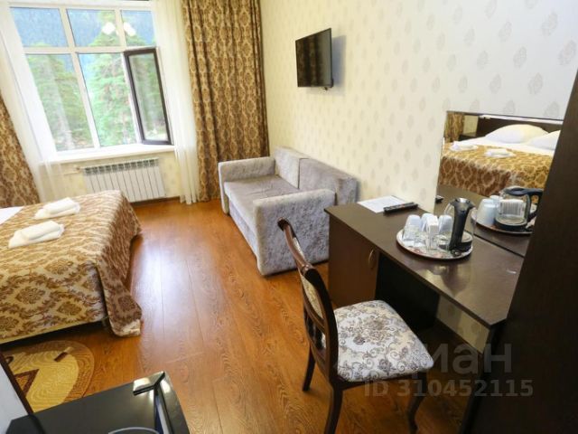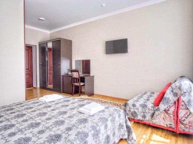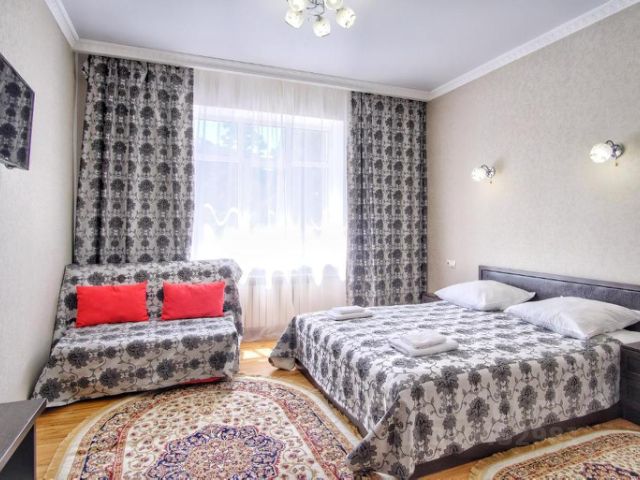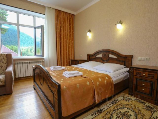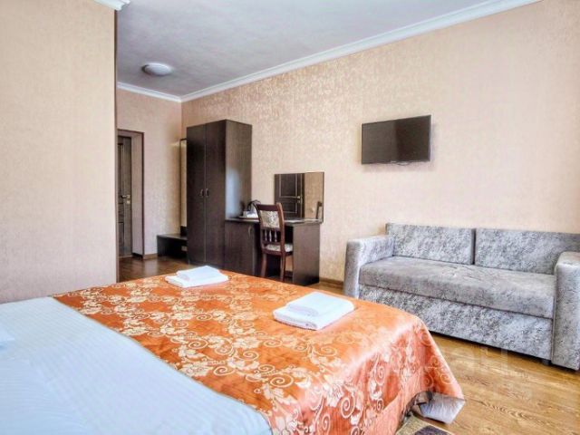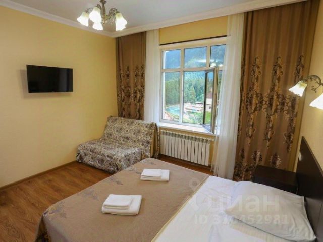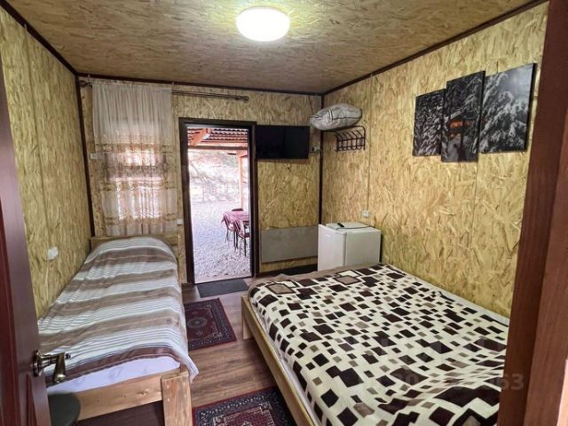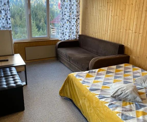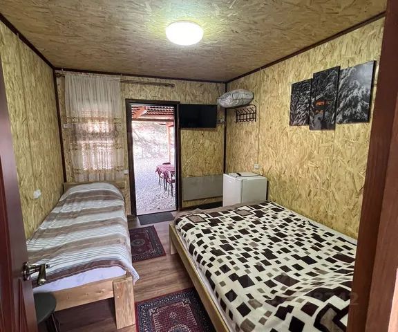 Трёхместный Караоке (3 домик 6 комната) площадью 17 кв.м с видом на горы и реку. Подходит для размещения 3 человек. (3 основных места) Имеет спальню с приятным интерьером. В номере: 1 двуспальная и 1 односпальная кровати. Имеется телевизор, отопление, вешалка, журнальный столик, посуда, столовые приборы, холодильник, стулья. Индивидуальная ванная комната: душ, раковина, туалет. В стоимость входит: Постельное бельё, полотенца, мыло, тапочки, фен. WI-Fi бесплатно на всей территории. Бесплатная частная парковка на территории.