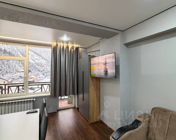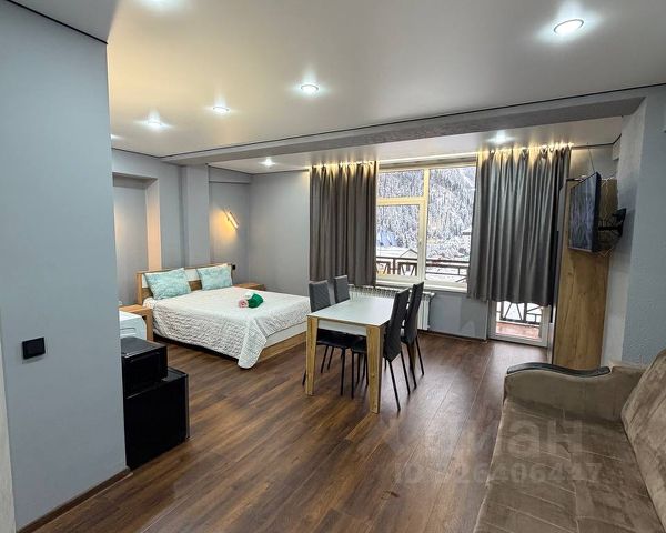 Студия в центре Домбая с видом на горы(у подъемников) Сдается уютная студия в самом центре Домбая. Основные параметры: Размещение: до 4-х человек (2+2). До подъемников: 300 метров. Вид: на горы. Удобства: Полноценная кухня (плита, микроволновка, холодильник, чайник). Ванная комната с душем, феном и средствами гигиены. Стиральная машина. Smart TV Условия: — Заезд с 14:00, выезд до 12:00 (возможно согласование). — Курение в квартире запрещено . — Можно с маленькими животными(+1000) Цена: Зависит от сезона и длительности проживания. Актуальную стоимость на ваши даты смотрите в календаре бронирования Фото реальные. В здании так же есть рестораны,бильярд,бар,кальян, караоке, 3 теплых бассейна,спа,массаж,хамам,аптека и тд