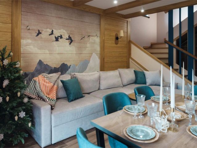 Во второй спальне две кровати, раскладной диван в гостиной первого этажа.